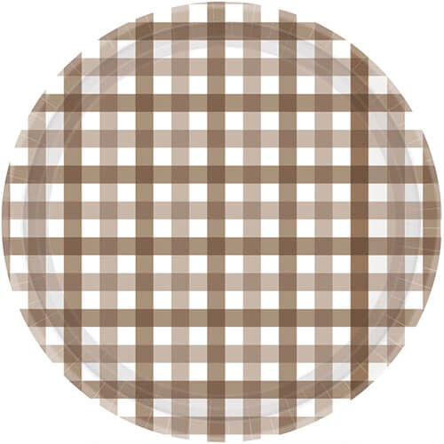 Create a beautifully styled party table with these Gingham Brown paper plates. Designed for celebrations of all kinds, these larger plates are perfect for serving main party food, generous slices of cake, shared platters and sweet treats while keeping your event looking coordinated and effortless. Ideal for any celebration, these plates help bring your party vision together with ease.