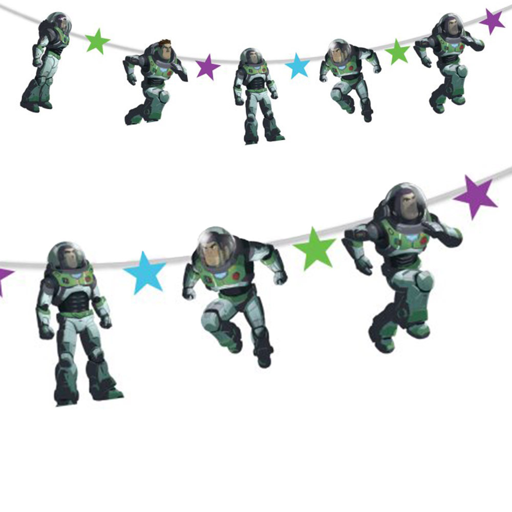 - 1 x Banner: Features Assorted Cutouts of Buzz Lightyear. Measures 2.8m Approx. Made of Cardstock. Ready to hang