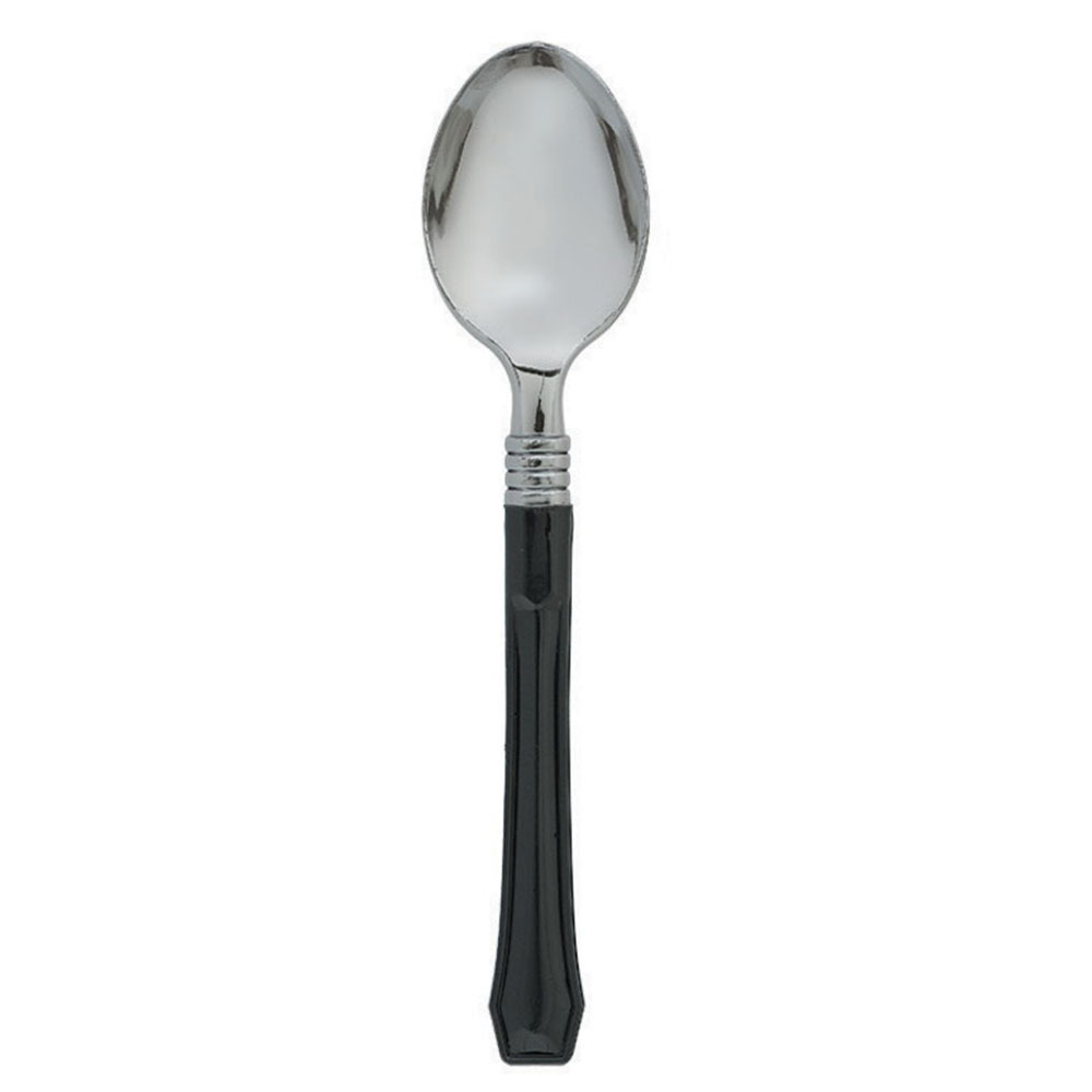 - 20 Spoons: 20 Silver Spoons with Black coloured handles. Made of Reusable Plastic. Hand Wash Only! Not suitable for microwave or dishwasher use